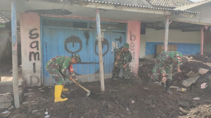 Percepatan Pemulihan: TNI Lumajang Gotong Royong Bersihkan Material Lahar di Rumah Warga Lumajang — Pemulihan pasca bencana lahar dingin Semeru terus dilakukan oleh jajaran