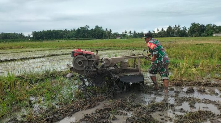 Babinsa Kaliploso Bantu Petani Olah Sawah dan Tanam Padi Demi Dukung Swasembada Pangan Cluring – Dalam upaya mendukung program swasembada pangan nasional, Babinsa Desa