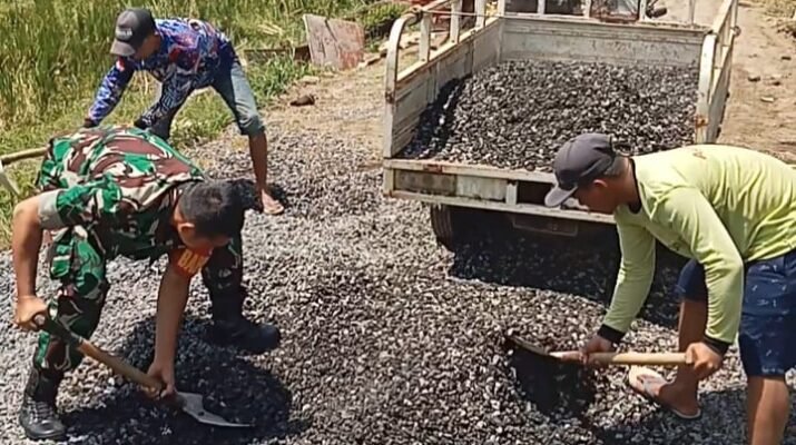 Warga Dusun Krajan Hebohkan Aksi “Geruduk Jalan Rusak”, Babinsa Cluring Turun Tangan Pimpin Perbaikan
