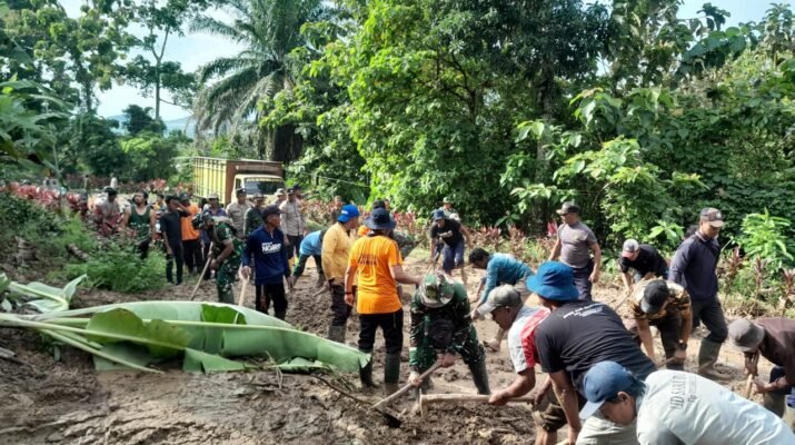 Respons Cepat! Kodim 0825 Banyuwangi Pimpin Karya Bakti Massal Bersihkan Longsor di Gunung Gamping Banyuwangi – Tanah longsor yang terjadi di Bukit Gunung Gamping,