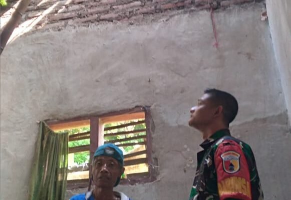 Babinsa Benculuk Laksanakan Komsos dan Tinjau Rumah Warga Tertimpa Pohon Akibat Cuaca Ekstrem Cluring – Babinsa Desa Benculuk Koramil 0825/07 Cluring, Koptu Fungky Hadi