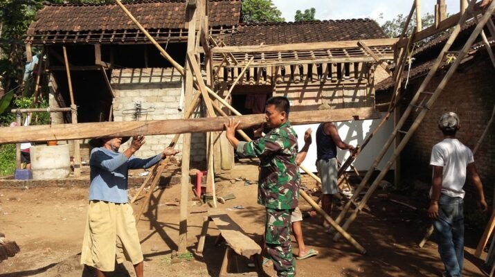 Babinsa Sraten Turut Gotong Royong Bantu Pembangunan Rumah Warga Binaan