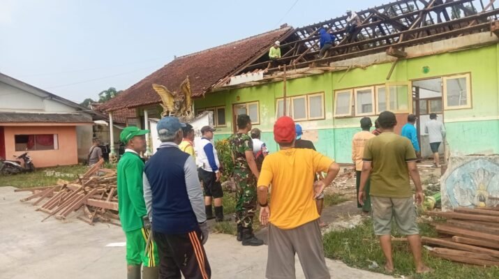 Babinsa Cluring Laksanakan Karya Bakti Perbaikan Atap Sekolah di Dusun Kepatihan Cluring – Babinsa Cluring, Koramil 0825/07 Cluring, Sertu Nurul Huda melaksanakan kegiatan karya