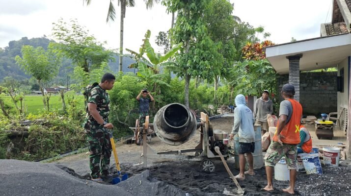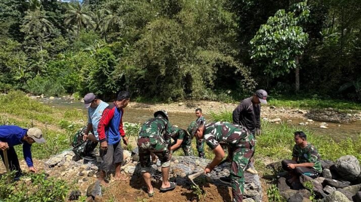 Keringat dan Semangat Gotong Royong Satukan Prajurit dan Warga Krajan 1A, Akses Desa Kian Terbuka.