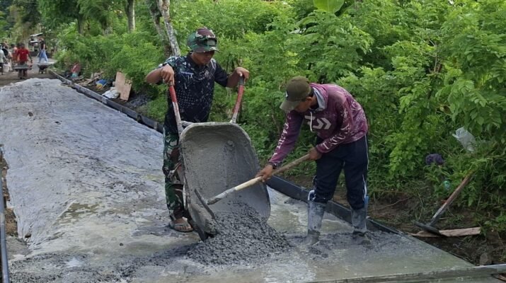 Keringat dan Semangat Gotong Royong Satukan Prajurit dan Warga Krajan 1A, Akses Desa Kian Terbuka. Semangat gotong royong dan dedikasi tinggi menjadi pemandangan sehari-hari