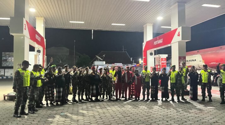 Koramil Bangorejo Bersama Banser dan Pecalang Gelar Apel Malam Siaga Gabungan