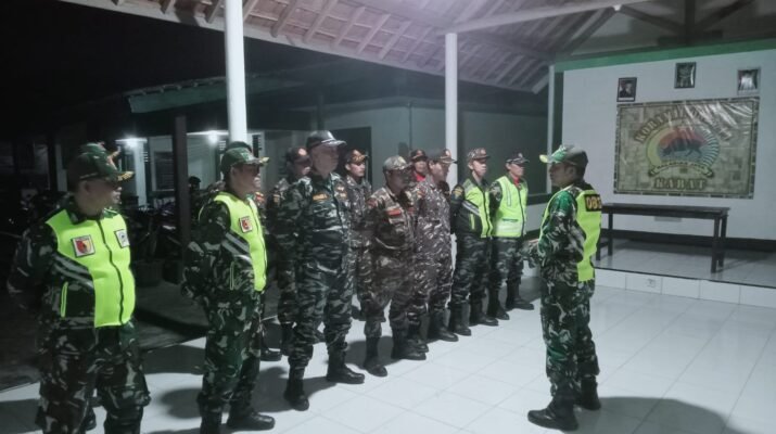 Koramil Bangorejo Bersama Banser dan Pecalang Gelar Apel Malam Siaga Gabungan Bangorejo – Dalam rangka menjaga kondusifitas wilayah, Koramil 0825/10 Bangorejo menggelar Apel Malam