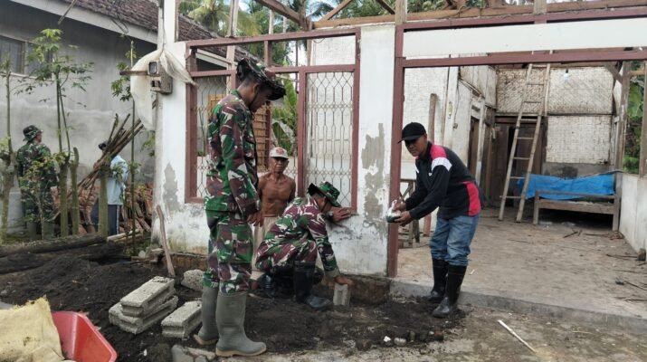 Kodim 0825/Banyuwangi Gelar Karya Bakti Bangun Rumah Warga di Desa Siliragung Banyuwangi – Anggota Kodim 0825/Banyuwangi bersama masyarakat setempat melaksanakan kegiatan Karya Bakti berupa
