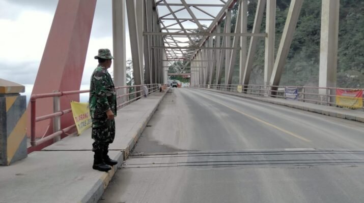 Personel Kodim 0821 Perketat Penyekatan dan Bantu Kelancaran Lalin di Jembatan Besuk Kobokan Pasca Erupsi Semeru Lumajang – Dalam rangka memastikan keamanan wilayah dan
