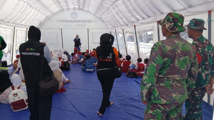TNI Dampingi Guru Mengajar di Sekolah Darurat untuk Pastikan Hak Belajar Anak Tetap Terpenuhi
