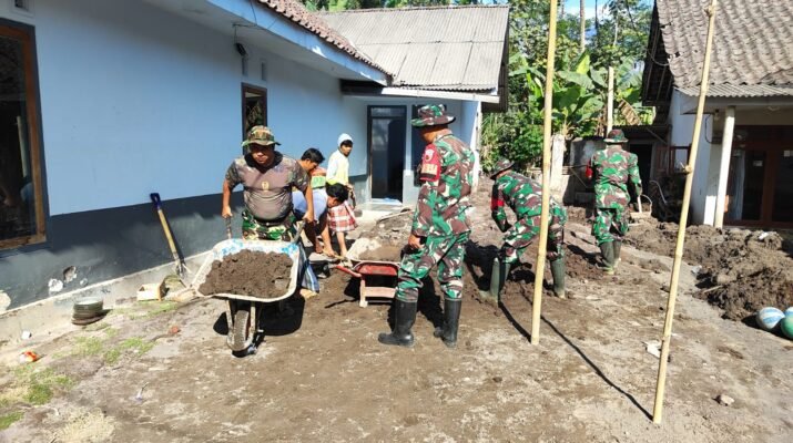 Gencarkan Pembersihan Pasca Erupsi Semeru, Tim Gabungan TNI Bantu Warga Bersihkan Rumah dan Material Vulkanik di Sumbersari Lumajang – Upaya pemulihan pasca erupsi Gunung