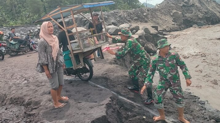 TNI Lumajang Tingkatkan Layanan Kemanusiaan: Bantu Warga Melintasi Aliran Lahar Dingin Semeru Lumajang – Di tengah cuaca yang tidak menentu dan aktivitas lahar dingin yang