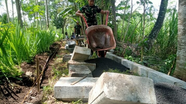 Melalui program TMMD, jalan tersebut kini mulai dibenahi dengan pemasangan paving block agar lebih rata, kuat, dan nyaman digunakan. Perbaikan ini diharapkan dapat menunjang mobilitas warga dalam berbagai kegiatan sehari-hari.