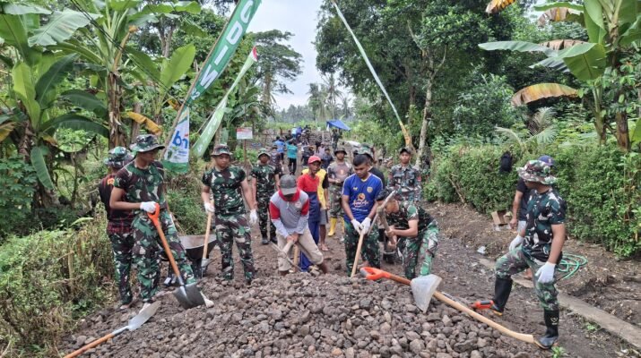 Kebersamaan TNI dan Warga Warnai Pembangunan Infrastruktur di TMMD ke-125 Kodim 0825/Banyuwangi Banyuwangi – Semangat gotong royong tampak nyata dalam pelaksanaan program TNI Manunggal