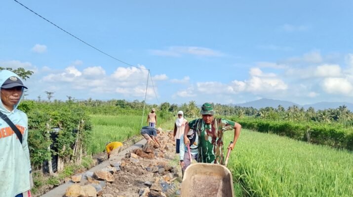 Banyuwangi – Suara mesin molen beradu dengan pekik semangat gotong royong memecah keheningan di Desa Kesilir, Kecamatan Siliragung, Kabupaten Banyuwangi, pada Minggu (10/08/2025). Di hari yang bagi sebagian besar orang adalah waktu berlibur, para prajurit TNI yang tergabung dalam Satuan Tugas (Satgas) TNI Manunggal Membangun Desa (TMMD) ke-125 Kodim 0825/Banyuwangi justru berjibaku di bawah terik matahari. Bersama warga, mereka melanjutkan pembangunan saluran irigasi yang kini telah memasuki tahap vital, yaitu pengecoran.